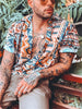 Bringen Sie mit diesem Hippie-Hemd aus den 1970er-Jahren Urlaubsfeeling in Ihre Garderobe. Kombinieren Sie es mit schmalen Jeans und weißen Schuhen für einen authentischen und trendigen Look!
