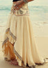 Dieser hübsche Rock mit hoher Taille besteht aus hochwertigem Chiffon und die lange, ausgestellte Form verleiht ihm eine sehr modische Silhouette. In der Taille oder tief getragen, kann es je nach Wunsch mit einem Top oder einer Bluse kombiniert werden. Jeans , die mit einem Gürtel und einem Paar Stiefeletten getragen werden, machen diesen weißen Bohemian-Hippie-Rock zu einem ikonischen Stück.
