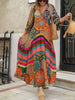 💫 Ein Fest der Farben und psychedelischen Muster: Dieses mehrfarbige Kleid ist mit psychedelischen, Paisley- und geometrischen Mustern verziert, die den freien und gewagten Geist der Hippie-Kultur einfangen. Jedes Detail ist sorgfältig gestaltet, um eine einzigartige visuelle Harmonie zu schaffen .